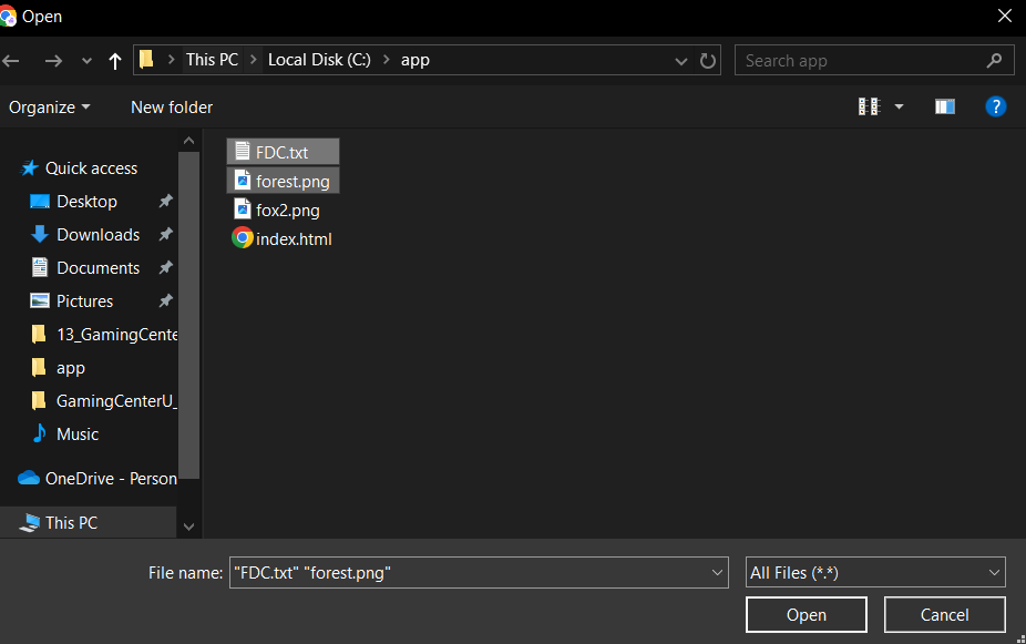 De exemplu, folosind elementul <input type="file" />, selectez din sistemul de fișiere, 2 fișiere: